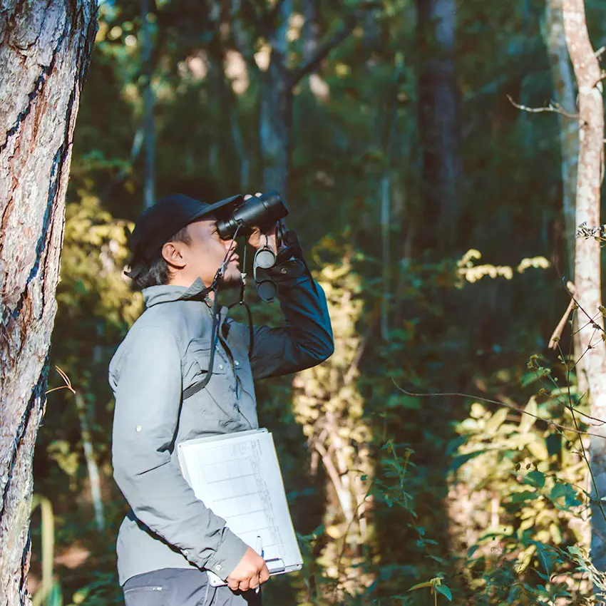 アグロフォレストリーのコーヒー農園で、夏鳥の調査と保全を行うプロジェクトのメンバーです。 (※現在公開に向け準備中です)